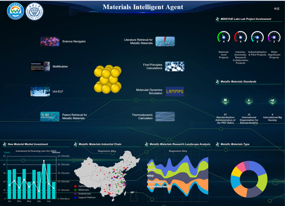“镁智星云”平台的诞生,旨在破解材料传统研发模式中存在的效率低、创新突破难等关键痛点,推动新材料研发与高端装备迭代提速。平台聚焦轻合金材料领域,深度融合大数据与人工智能技术,整合了超过50万篇科技文献与专利数据、300万条合金结构数据,并基于超1亿篇文献资源训练出轻合金专业智能问答与智能设计大模型。