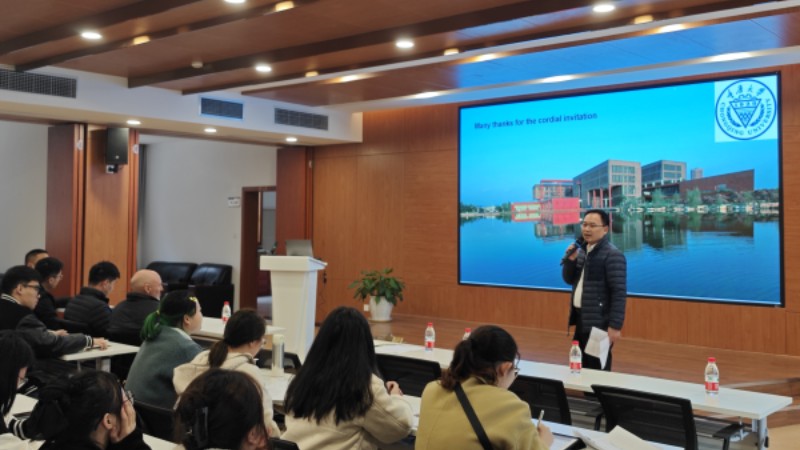 接着,龙木军对王鑫副研究员的学术背景、研究方向、主持的项目、获得的成果等进行了介绍,并邀请他作题为“Cardanol as A Versatile Building Block for Fabrication of Bio-based Flame Retardant Epoxy Thermosets”的学术报告。