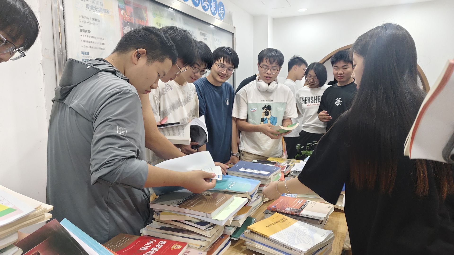 活动期间,现场热闹非凡,前来领书的同学络绎不绝。志愿者们分时段轮流值班,引导同学们有序领取专业书和考研书。领书的同学们纷纷表示,这些写满笔记、勾画重点的书籍,为他们解决了许多学习困惑,对课程学习帮助极大。一位大一冶金专业新生感慨道:“这不仅是知识的传递,更是精神的接力。”在值班同学的引领下,同学们互帮互助,积极寻找自己需要的书籍,现场氛围热烈而有序。