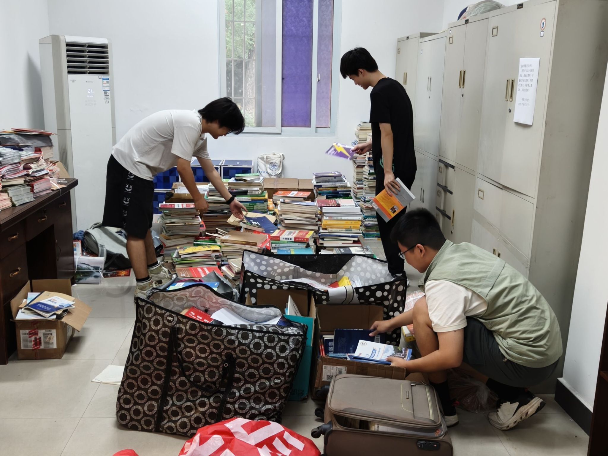 活动筹备阶段,学院通过党支部、宣传中心等渠道进行广泛动员。各年级同学积极响应,踊跃参与到旧书的分类、整理工作中,并将书籍搬运至活动室。这些一袋袋的旧书,凝聚着学长学姐们的心血,不仅有详细的课堂笔记、重点标注,更承载着他们对学弟学妹的鼓励与期许。