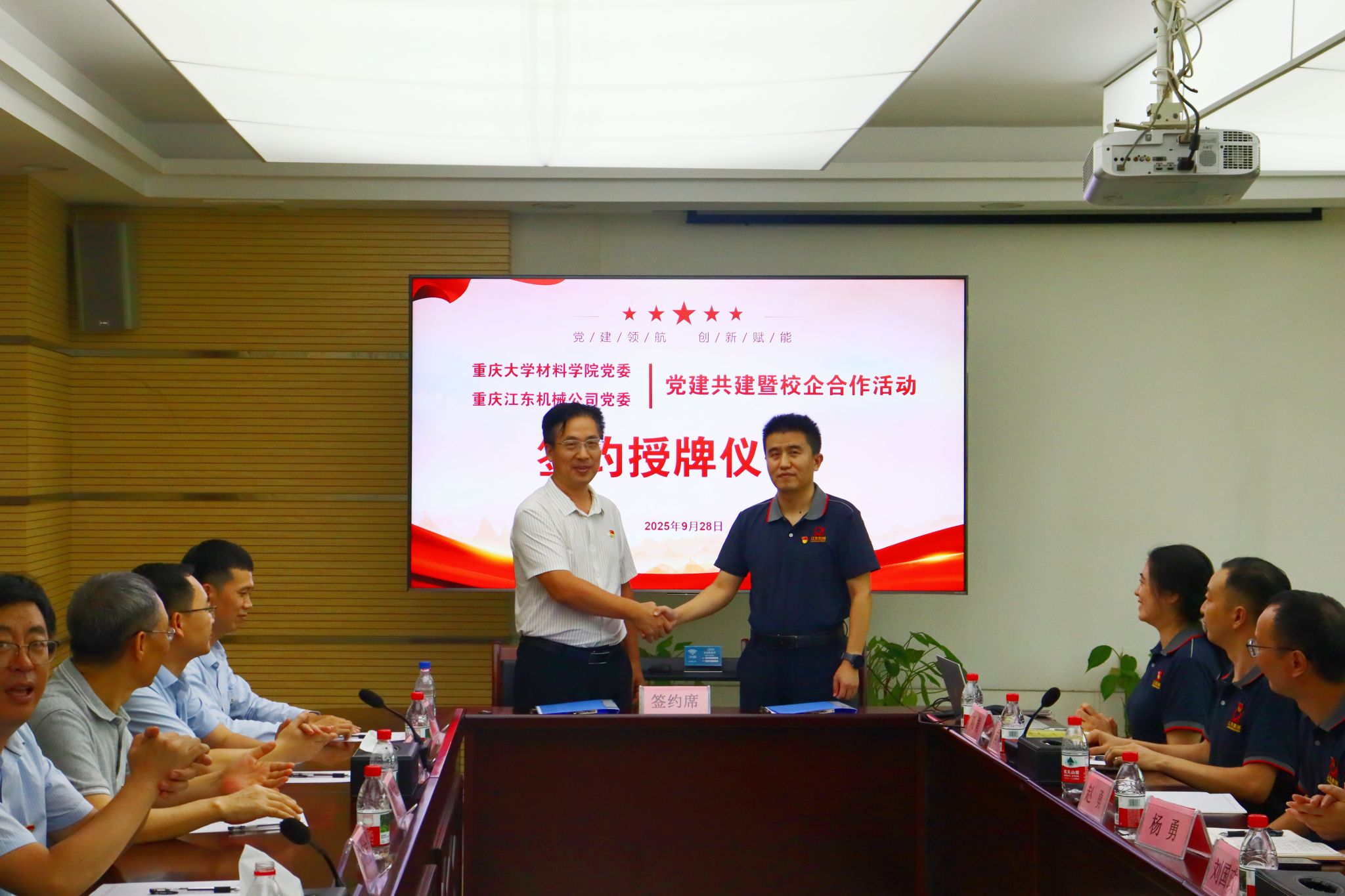 2025年9月28日,重庆大学材料科学与工程学院(以下简称“材料学院”)前往重庆江东机械有限责任公司(以下简称“江东机械”),开展校企党建共建暨校企合作活动。材料学院党委书记王敬丰、江东机械党委书记、董事长兼总经理刘雪飞等出席。