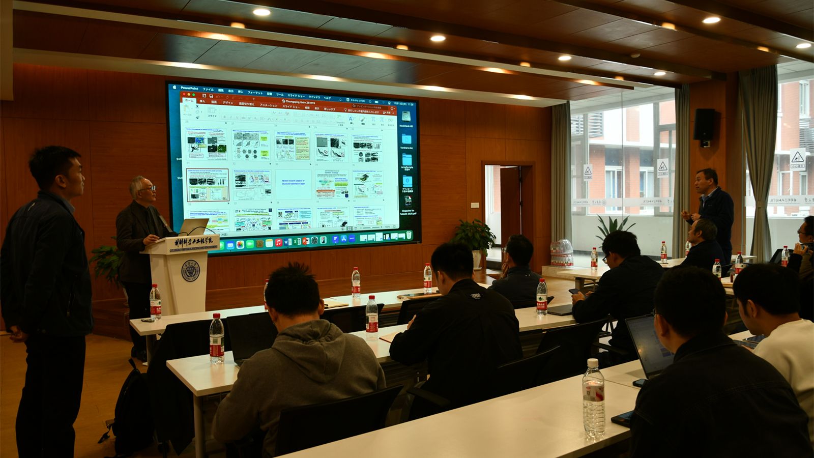 报告开始前,主持人对Tadashi Furuhara教授的到访表示热烈欢迎,并简要介绍了其在金属材料固态相变领域的主要学术成就和国际影响力。报告会上,Tadashi Furuhara教授作了题为“Roles of thermomechanical processing on microstructure control of high strength steels”的学术报告。他介绍了日本东北大学材料研究所的发展历史、人员构成、科研方向和主要成果,着重介绍了研究所支持的国际交流与合作项目,支持国际青年访问与交流。接着,他结合钢铁材料研发的重大项目变革进程,针对热机械/热化学方法的微观组织精准调控在高性能钢铁材料研发中的作用进行了深入探讨。最后,结合近期绿色、可持续钢铁、氢冶金等现代新技术,展望高性能钢铁材料的未来发展前景、挑战和方向,对以后开展国际合作表示了极大的兴趣。