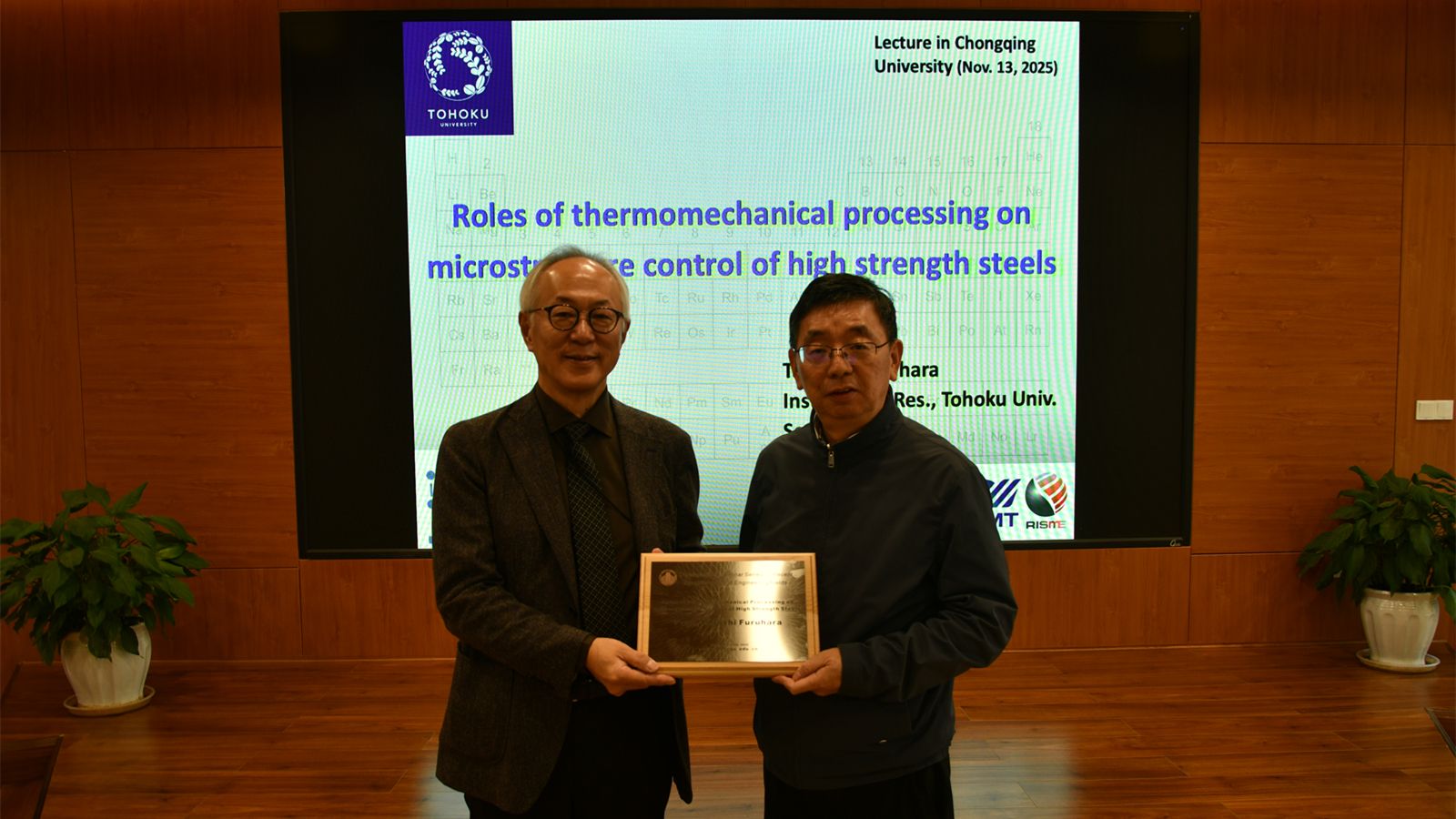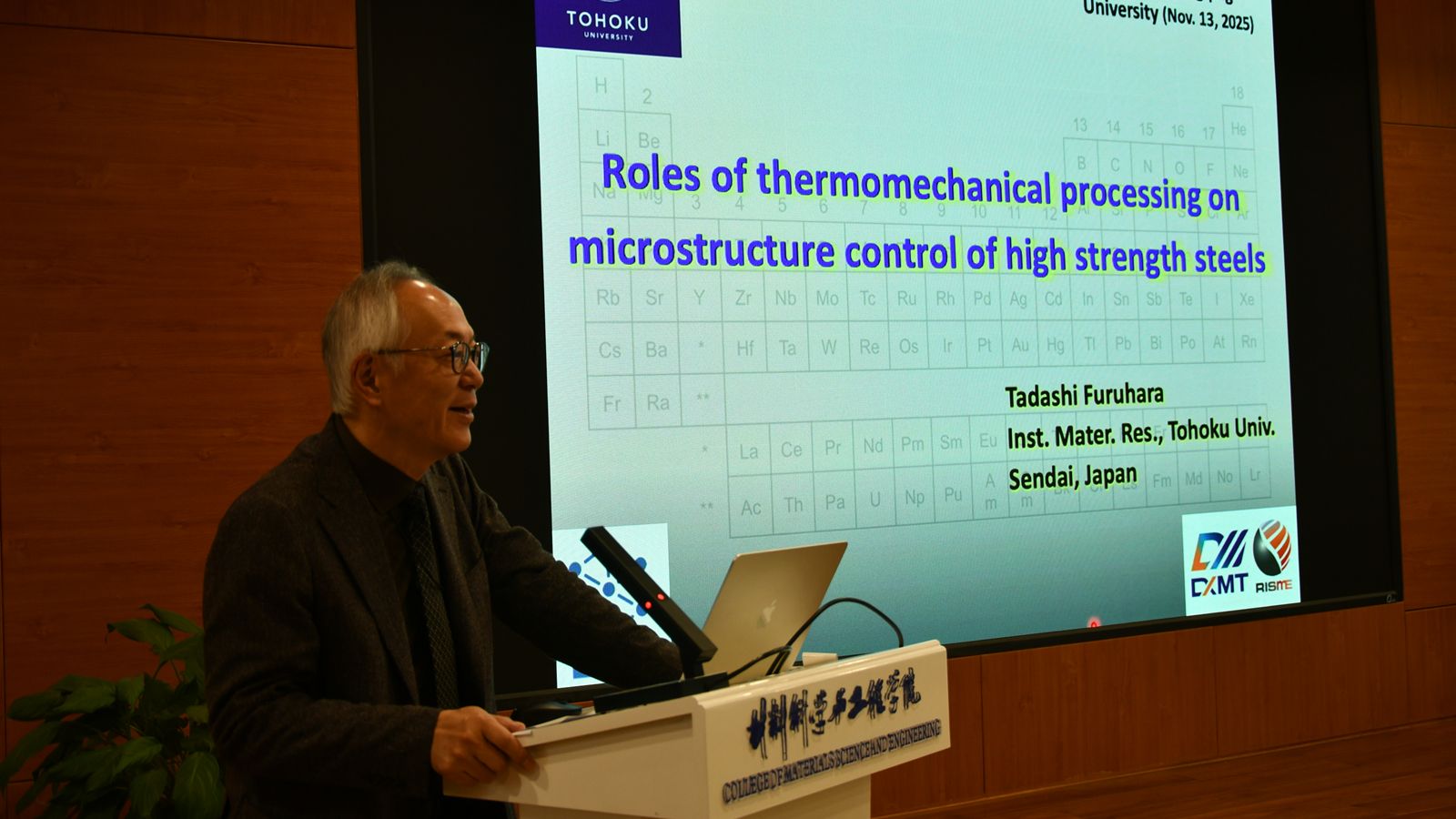 2025年11月13日,日本钢铁协会会长、金属学会副会长、Acta Materialia和 Scripta Materialia编委、日本东北大学金属研究所所长Tadashi Furuhara教授应邀访问重庆大学材料学院,并为全院师生作工程科学前沿讲坛主题报告。本次讲座由材料学院侯自勇副教授主持,全院百余师生在沙坪坝校区B校园材料楼学术报告厅共享学术盛宴。