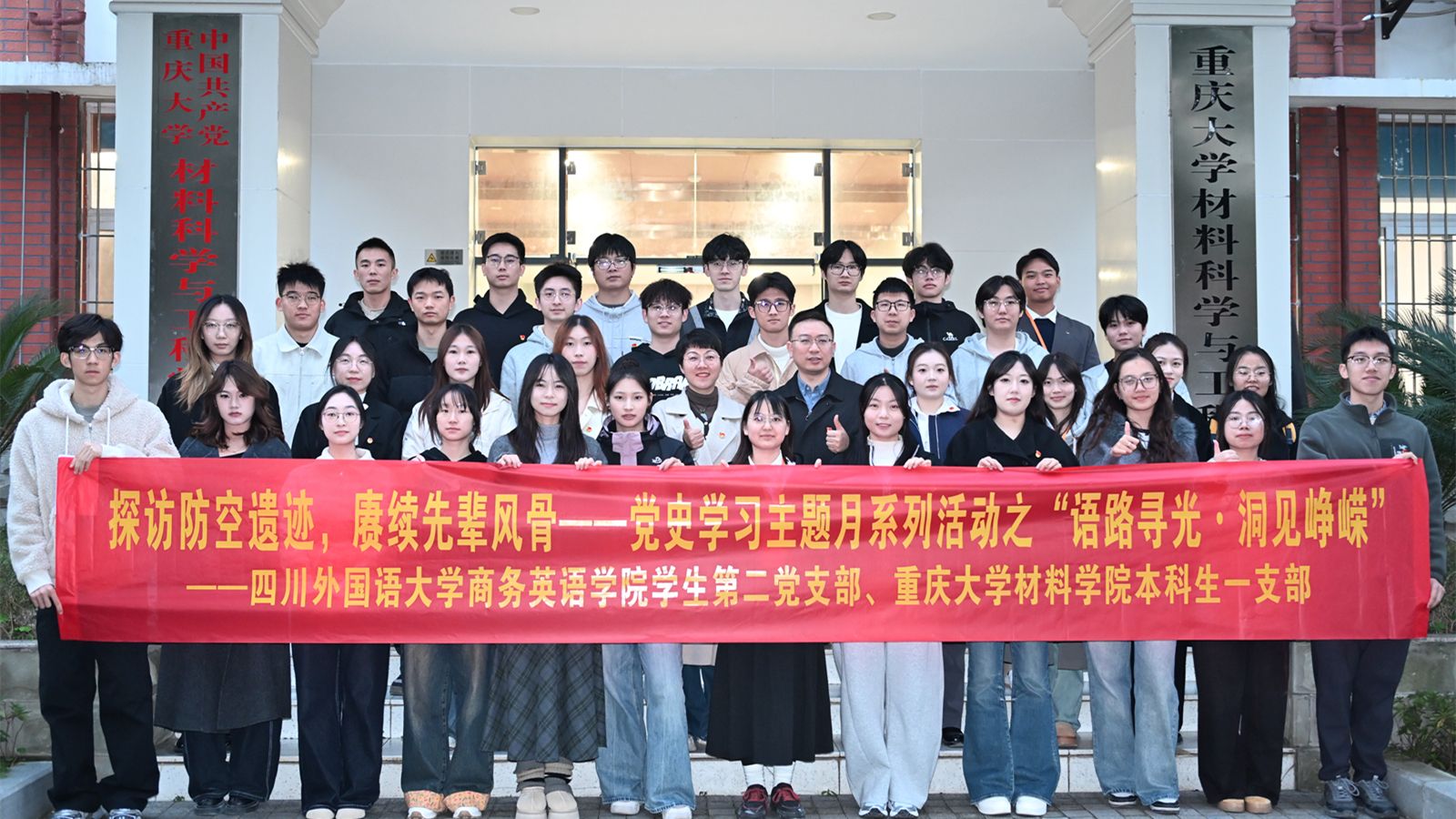 2025年11月27日,重庆大学材料学院本科生一支部与四川外国语大学商务英语学院学生第二党支部在重庆大学成功举办“语路寻光·洞见峥嵘”党建联建活动。双方支部共30余名师生党员参与,通过沉浸式党史学习与深度交流,共促支部建设与发展。