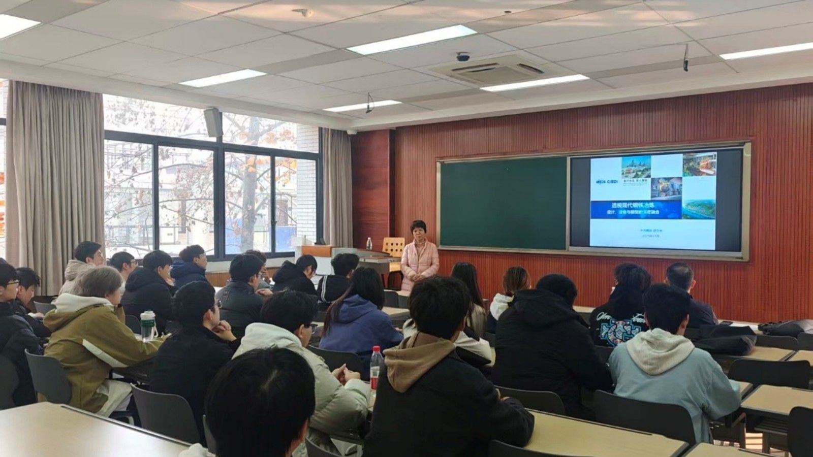 作为深耕钢铁冶炼领域十余年的资深专家,游香米结合中冶赛迪的发展历程与丰富的工程设计经验,为同学们呈现了一场融合历史积淀与前沿技术的精彩报告。她首先以“1958年支援三线建设”为切入点,深情回顾了从鞍钢到攀钢、再到宝钢建设的奋斗史,引出了中国钢铁工业从技术引进到自主创新的壮阔画卷。报告主体紧扣“设计、设备与模型”的深度融合:首先,系统梳理了从铁水预处理、转炉/电炉冶炼到LF/RH/VD精炼的完整工艺流程,详细解析了铁钢界面匹配、废钢连续加料及真空脱气等关键技术的工程逻辑;然后,重点阐述了在“高端化、绿色化、智能化”行业发展趋势下,国产装备如何实现从“卡脖子”到“国产替代”的跨越,举例说明了大型电炉、无料钟炉顶及关键阀门技术的自主攻关历程;最后,深入探讨了二级控制模型、工业软件及大数据在提升冶金效率与质量中的核心作用,展示了现代钢厂“少人化、集控化”的全新面貌。