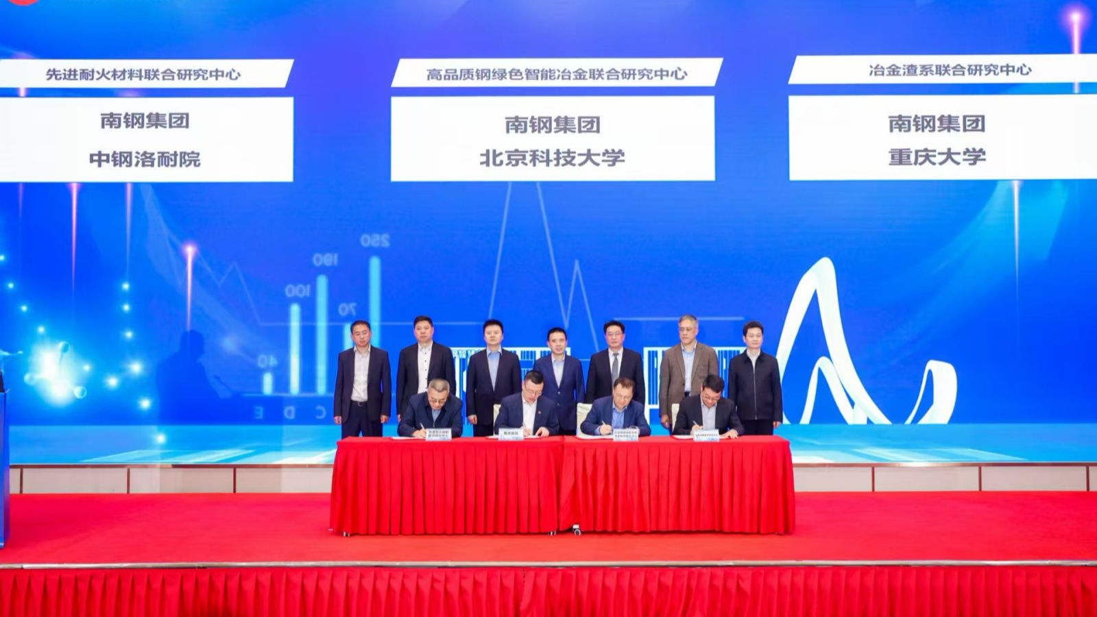 2026年4月11日,在南京钢铁股份有限公司主办的“打造国际领先“钢铁材料+服务”基地产业科技融合深度行暨南钢集团2026年创新大会”上,重庆大学与南钢正式签署合作协议,共建“冶金渣系创新技术联合研究中心”。重庆大学冶金学科带头人吕学伟教授带队、材料科学与工程学院何生平教授、王强强副教授、张旭彬副教授一同参加大会,吕学伟教授作为代表完成签约仪式,标志着双方在冶金熔渣领域的合作迈入全新阶段。